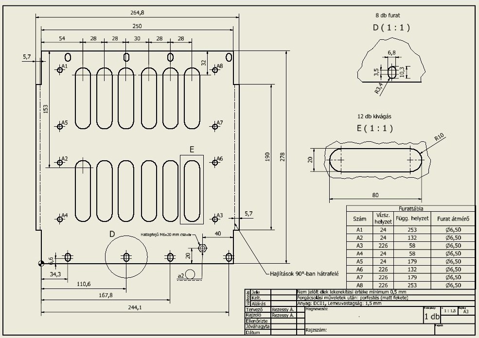 - Gyártáshoz szükséges műhely- és összeszerelési rajzok